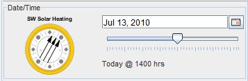 Solar preheating is controlled by date, time and location. This panel allows you to input the date and time. Note that the location is controlled by the map viewer.